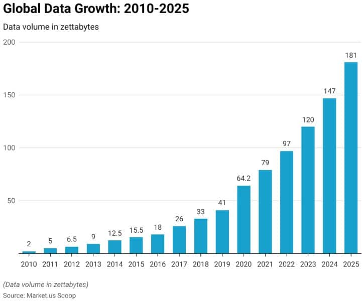 - By 2025, it is estimated that the accumulated volume of global data will reach 175 zettabytes (175 trillion gigabytes).
